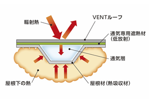 する熱は通気専用遮熱材で反射して室内に戻します。