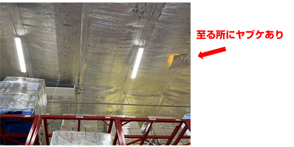 ≪破損例1::エアーキャップタイプの壁通気での破損≫