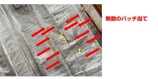 ≪破損例2::エアーキャップタイプのテント内使用の破損≫