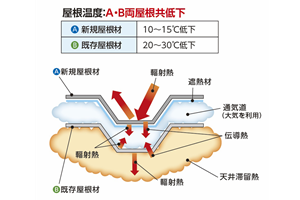 気温は、年々しかも急激に上昇しています。本工法は、遮熱材の低放射性能を利用