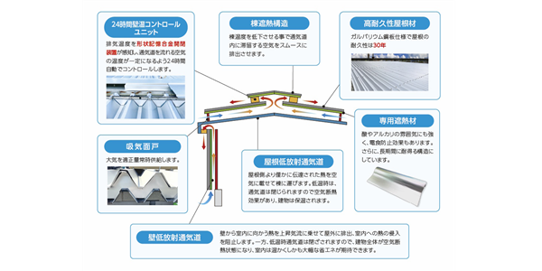 温コントロールシステムを設置、年間365日通気層内の通気量を自動的に変えて