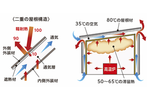 けて設置した二重構造の外装構造で、通気することで通気専用遮熱材の低放射性能