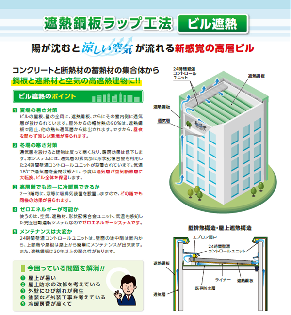 建物遮熱に取り組み25年、屋根の上、天井裏、屋根下側等種々の遮熱施工をして