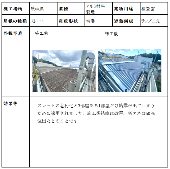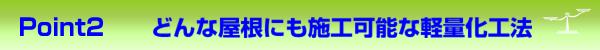 板ラップ工法でも荷重の関係で設置できない建物もあります。本工法は、鋼板の重量をこれまでの60%削減、僅か3Kg/㎡以内としどんな屋根にも施工可能としました。従って、荷重的に厳しいスレート屋根にも問題なく施工可能です。