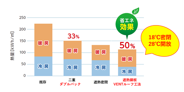 省エネ効果は、何と50%を実現します。施工価格が安くなり、しかも一般的な