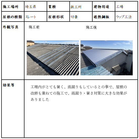 造迄は遮熱鋼板ラップ工法と同じですが、両者の鋼板の一部が接触していることが