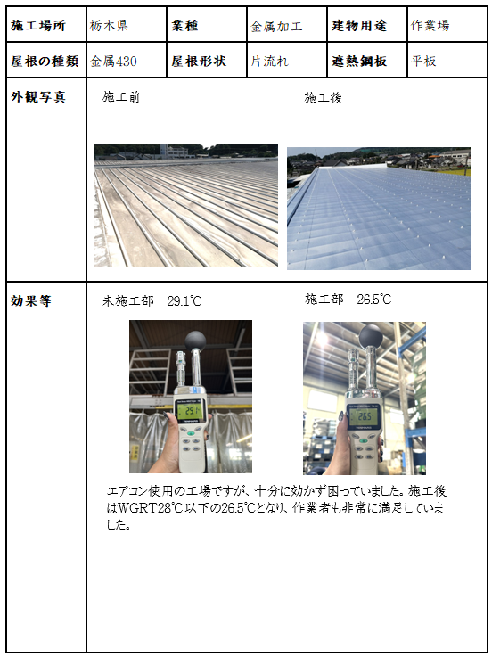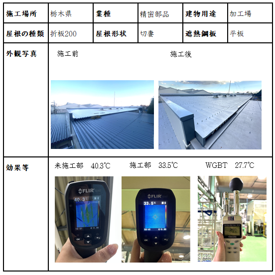 年間を通して室内を20℃に保温している宇都宮の精密機械工場、遮熱鋼板ラップ
